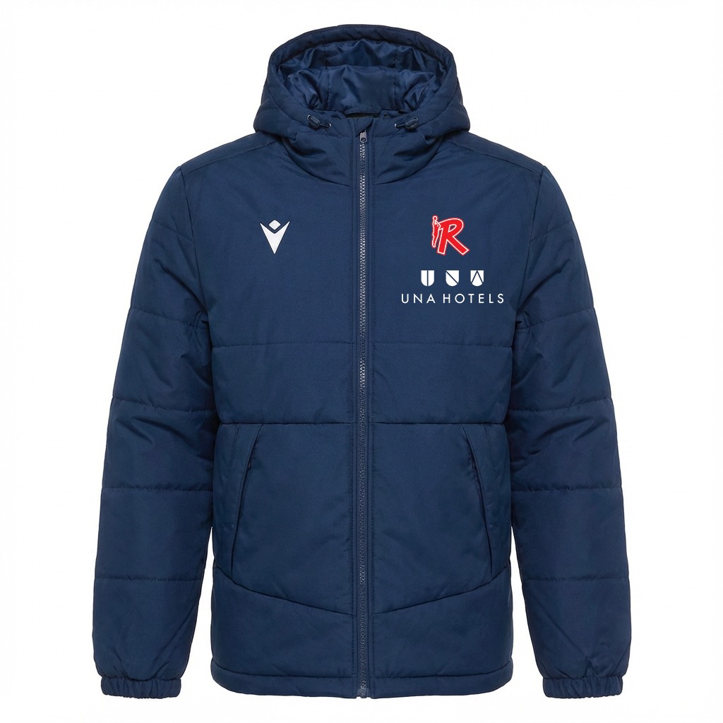 Giacca imbottito Macron. Colore blu, loghi ricamati.